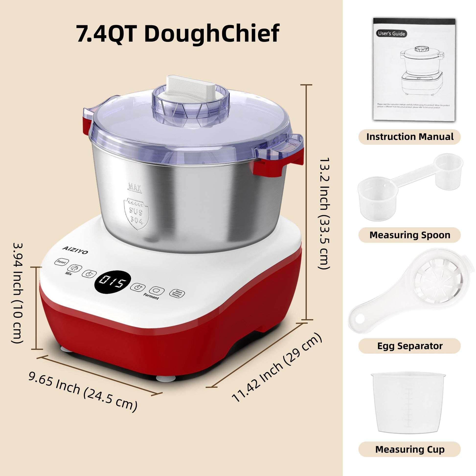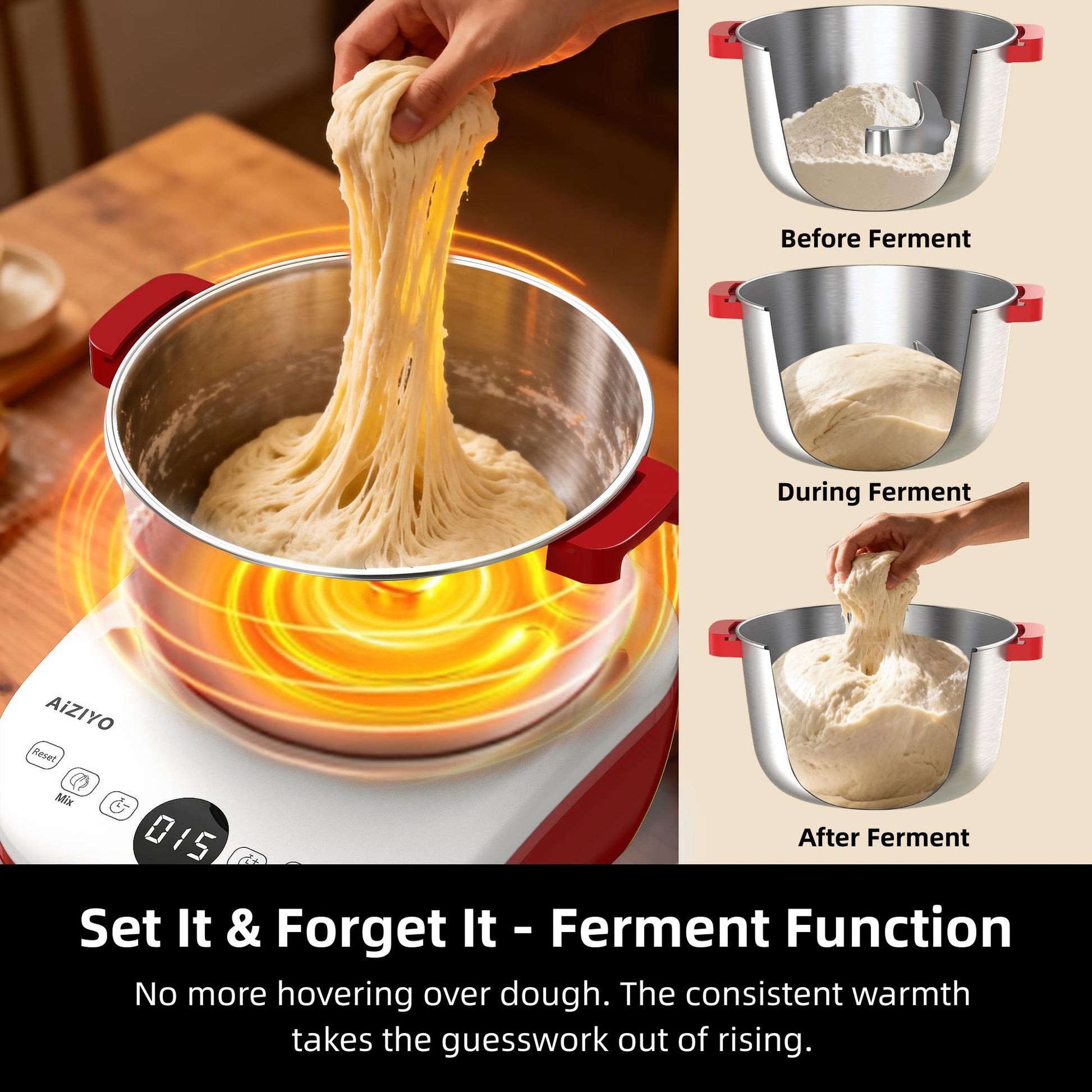 AIZIYO DoughChief 7Qt Dough Mixer – Electric Dough Maker with Ferment Function, Stainless Steel Bowl, Easy Clean